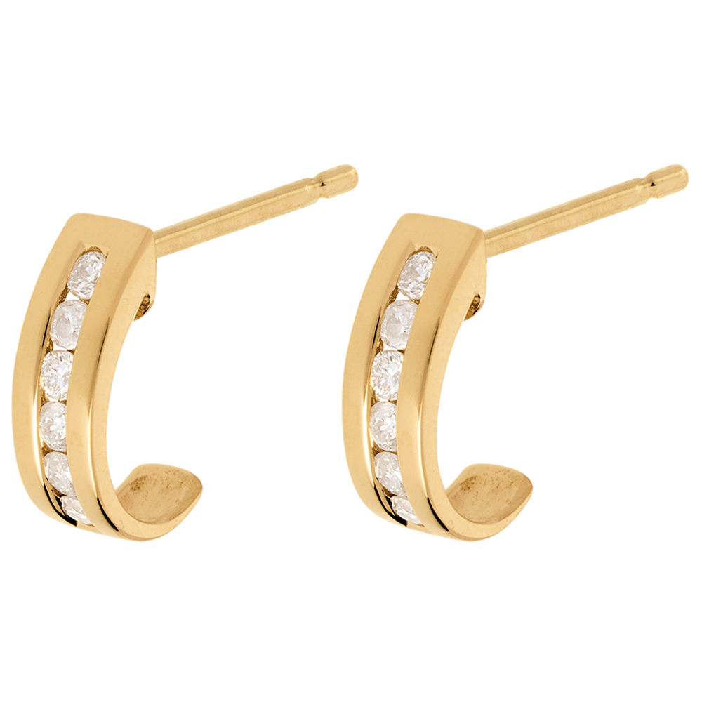 Orecchini Mezza Luna - Oro giallo pavé -18 carati - 12 Diamanti - 0.22 carati