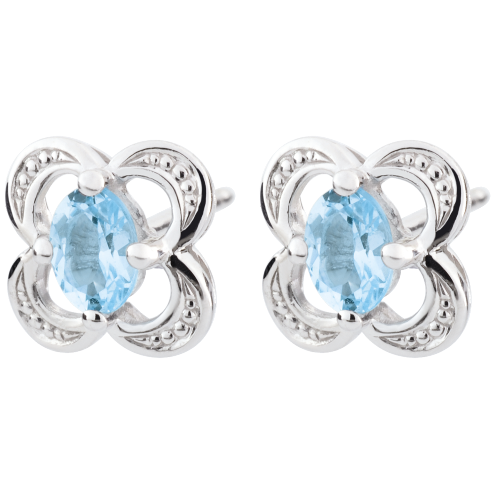 Orecchini Mini Flora - Oro bianco - 9 carati - 2 Topazi - 0.42 carati
