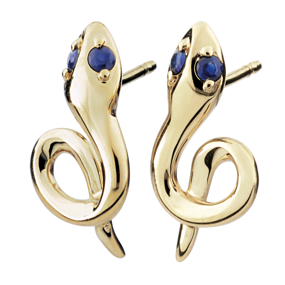 Orecchini Passeggiata Immaginaria - Mini serpente - Oro giallo - 9 carati - Zaffiri.