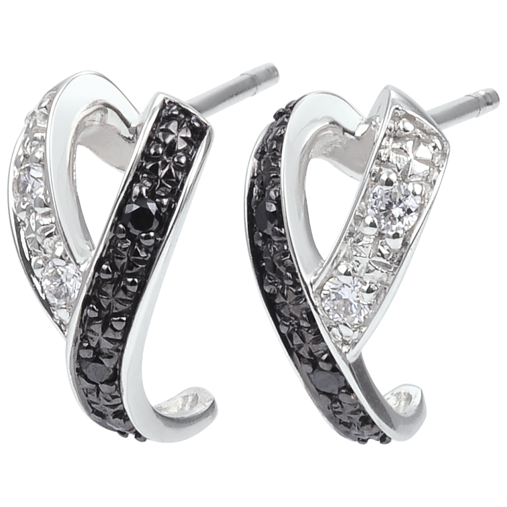 Un duetto d'onde bianco e nero con lavorazione a diamante dà vita a questi orecchini femminili ed eleganti