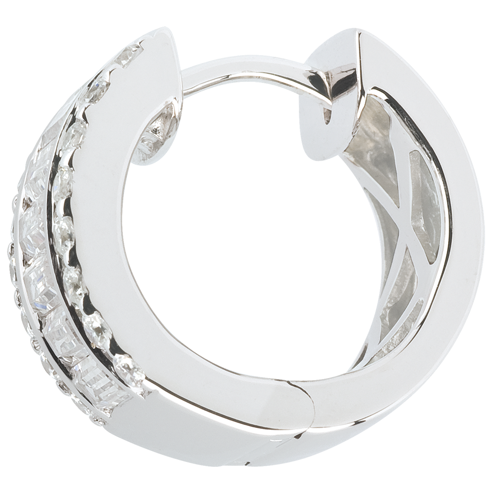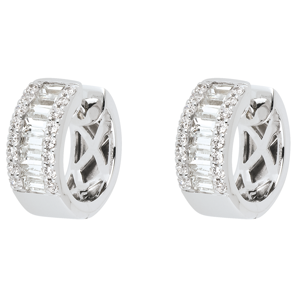 Tre file di diamanti, brillanti e baguette per un effetto ricco e lussuoso su Oro bianco.