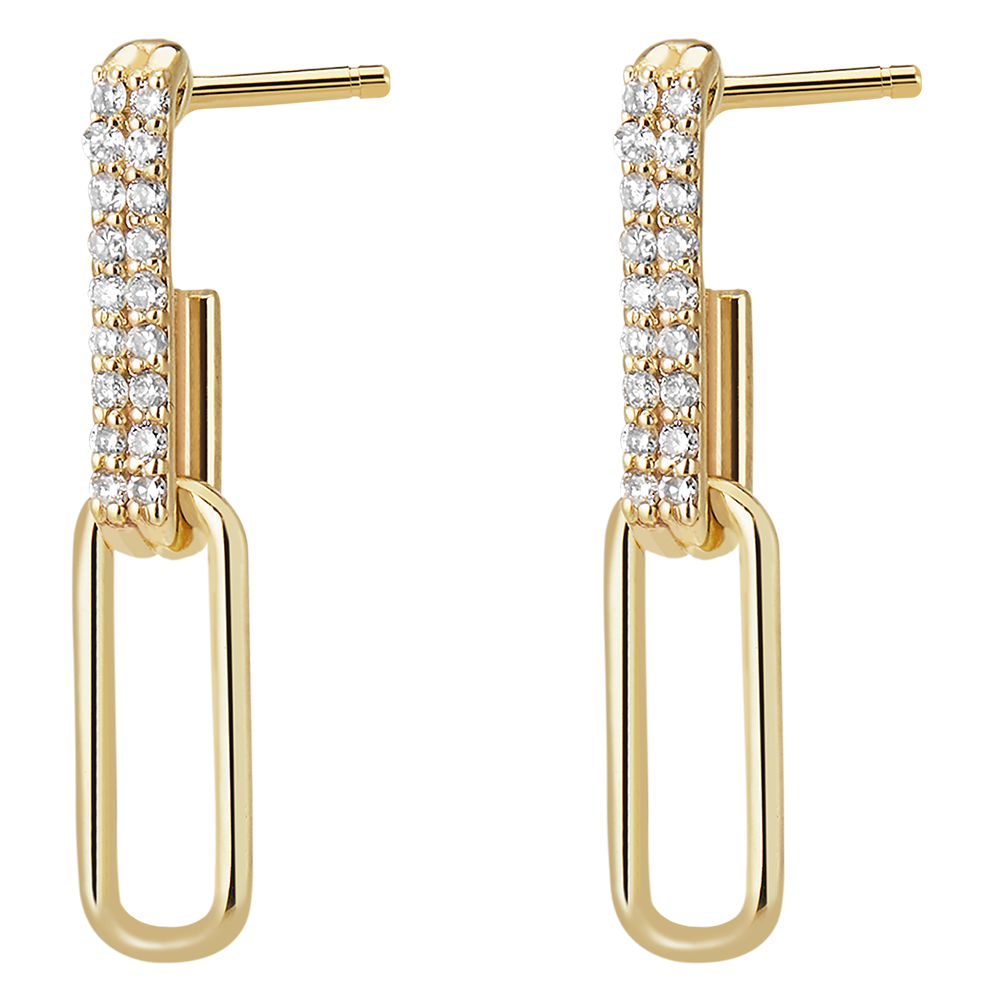 Un duo di maglie in oro giallo delicatamente diamantate ondeggiano al ritmo dei vostri movimenti. Una coppia di orecchini moderni e femminili.