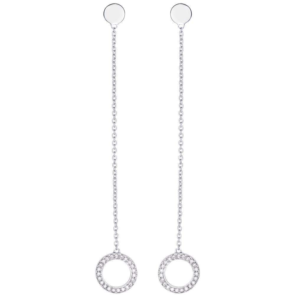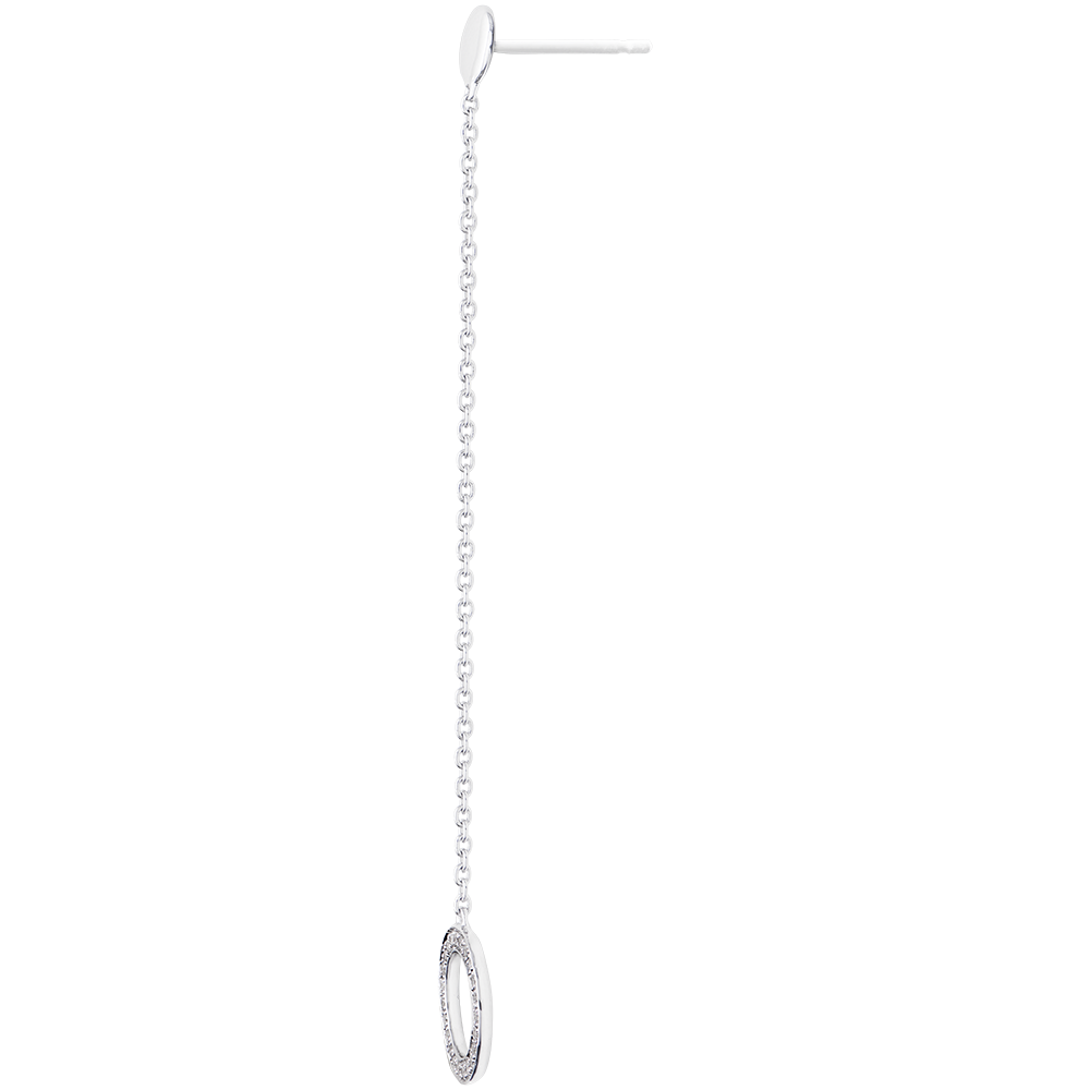 Un paio di orecchini a catena, impreziositi da un cerchio pavé dal movimento leggero e invitante. Un gioiello ultra-femminile da abbinare in modo disinvolto anche ad un look più sofisticato.
