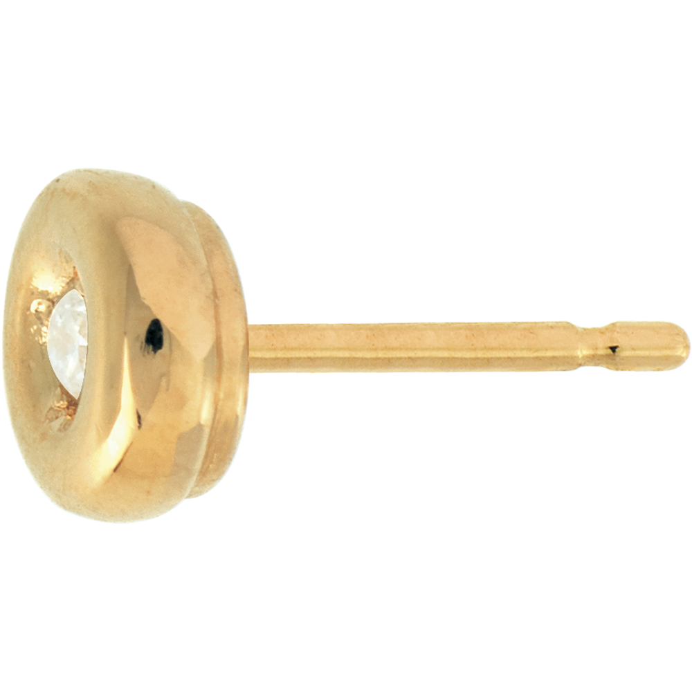 Un diamante custodito in un nido d'Oro giallo, per degli orecchini a lobo rotondi e delicati.