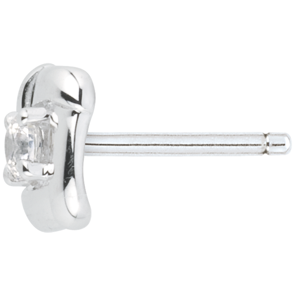 Un diamante solitario custodito da un nido in Oro bianco per una coppia raffinata di orecchini a lobo.