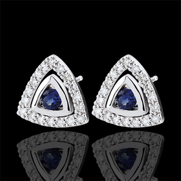 Orecchini Salma - Oro bianco - 9 carati - 36 Diamanti - 0.18 carati - 2 Zaffiri blu