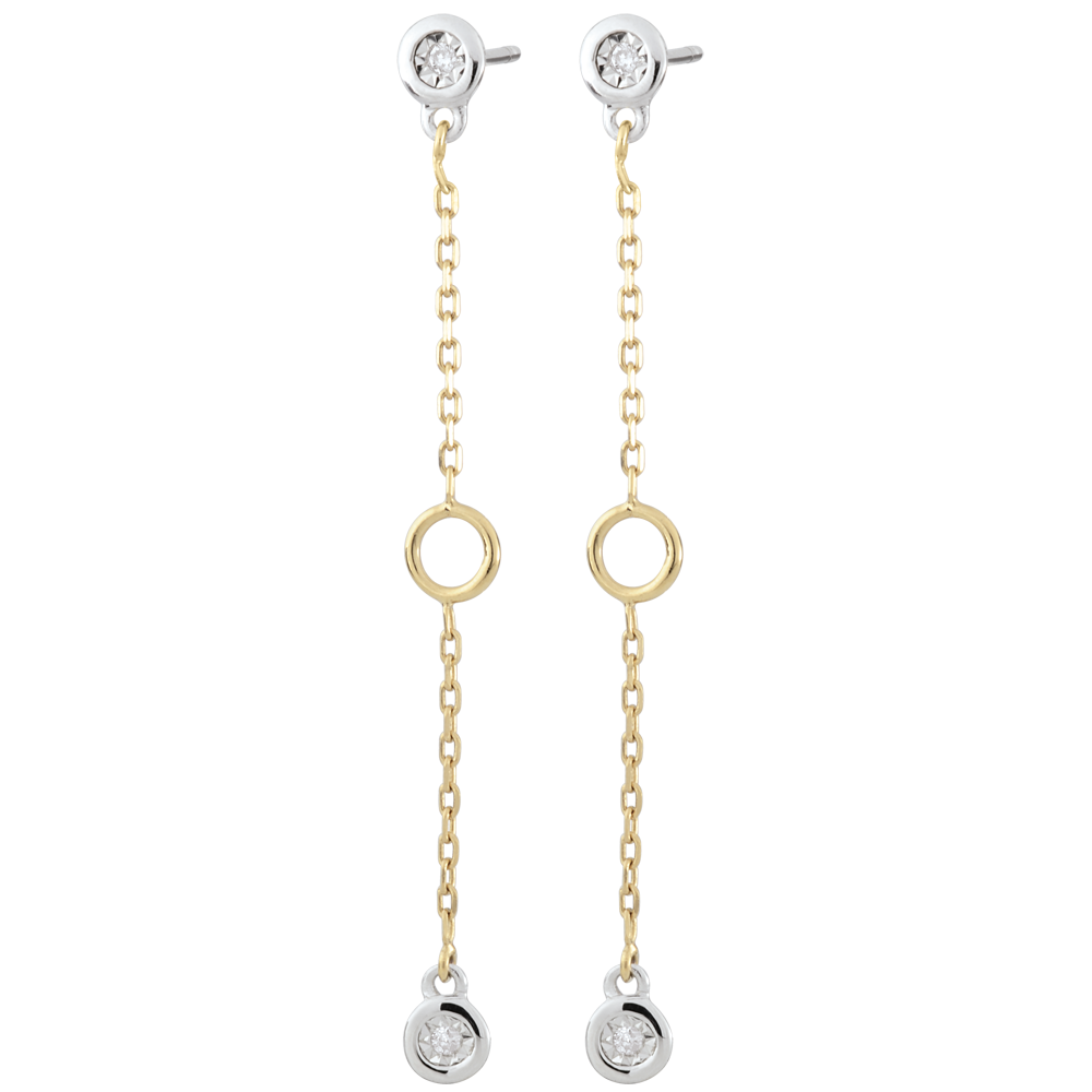 Orecchini Satine - Oro bianco e Oro giallo - 9 carati - 4 Diamanti