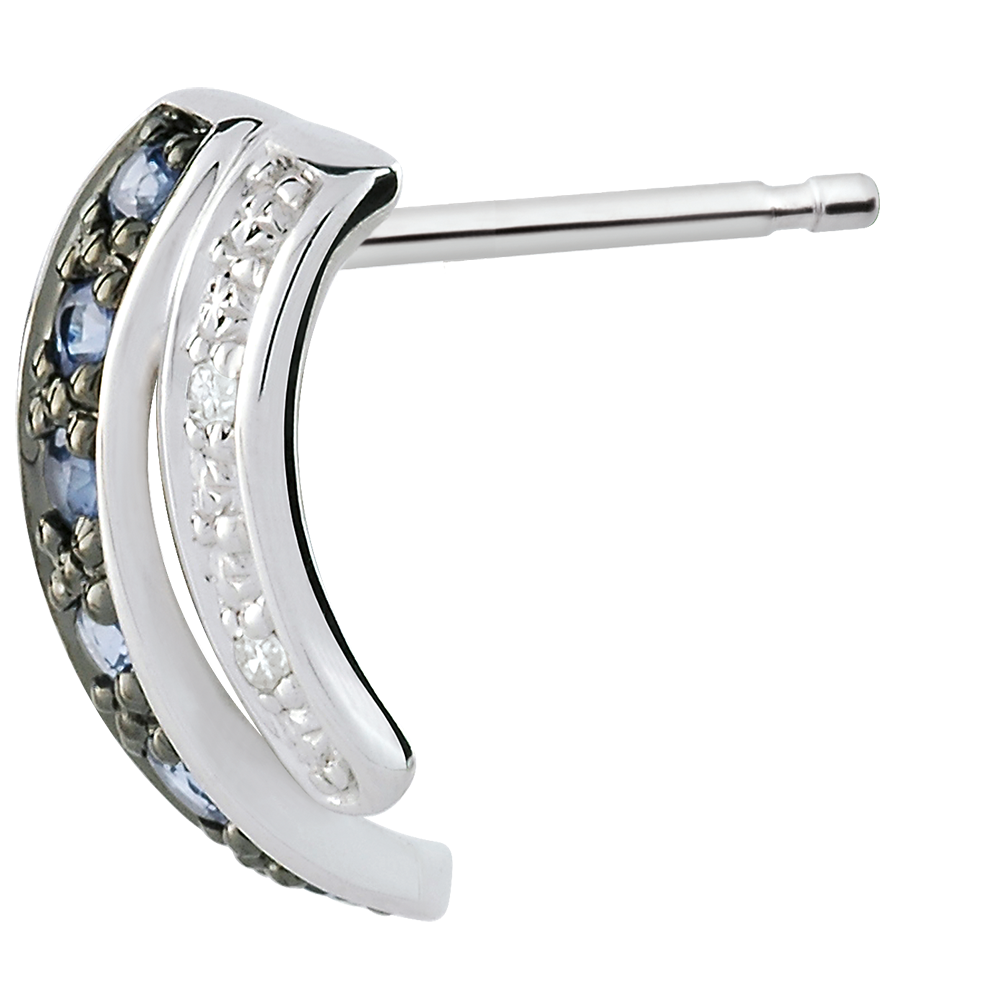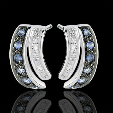 Gli orecchini Savina sono incastonati con 12 zaffiri blu di qualità Very Good e 4 diamanti con purezza minima H, I, garantendo brillantezza e colore notevoli.