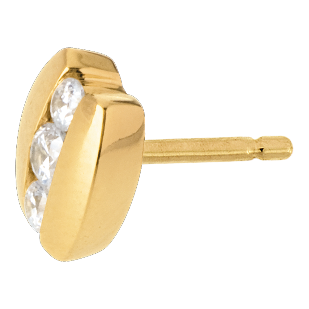 Una trilogia di diamanti delicatamente intrecciati tra due parentesi in Oro giallo.