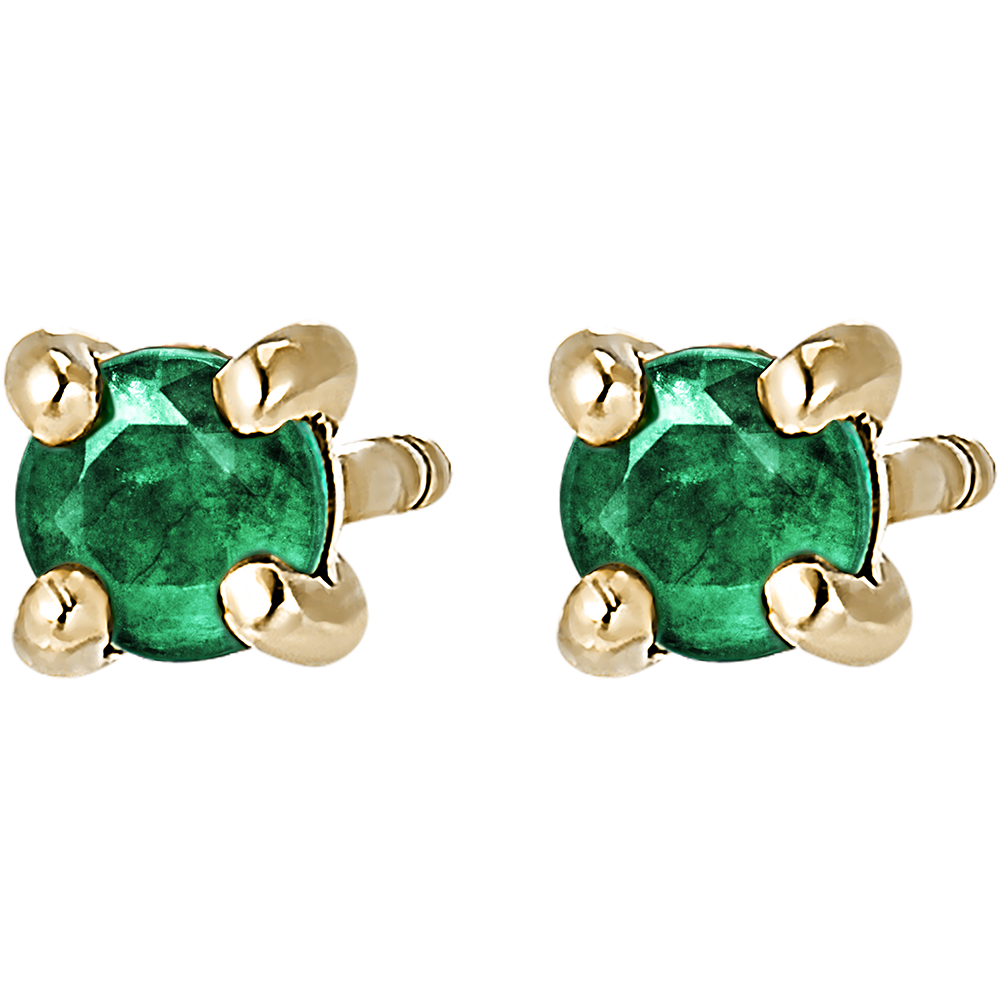 La celebrazione e l'essenzialità di due smeraldi montati su un sobrio orecchino a lobo in oro giallo. Un gioiello classico e senza tempo, con un tocco di colore.
