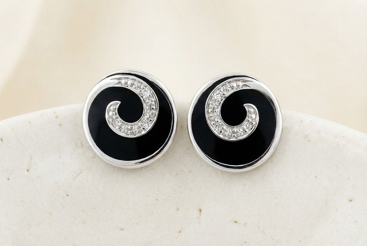 Orecchini Vortice prezioso - Oro bianco - 9 carati - 6 Diamanti