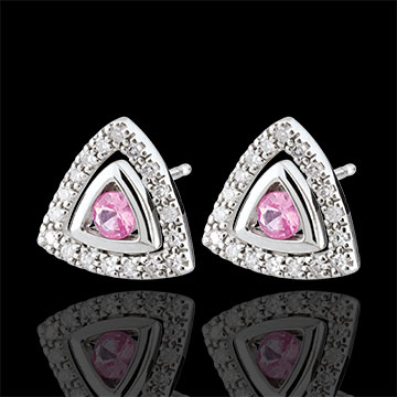 Orecchini Salma - Oro bianco - 9 carati - 36 Diamanti - 0.18 carati - 2 Zaffiri rosa