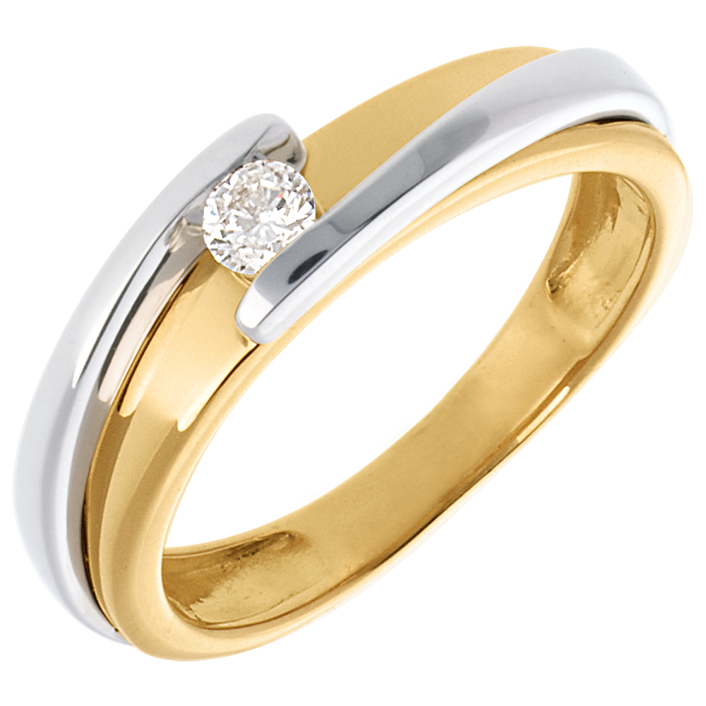 Solitario Nido Prezioso - Bipolare - Oro giallo e Oro bianco - 18 carati - Diamante
