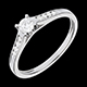 La purezza essenziale di un diamante solitario, sottolineato da un corteo di brillanti su una montatura in Oro bianco leggera e delicata.