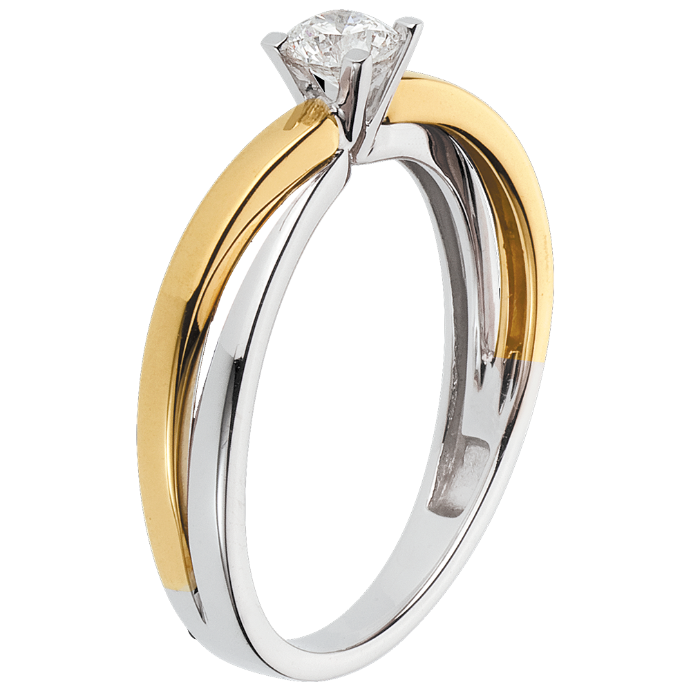 Solitario Duetto - Oro giallo e Oro bianco - 18 carati - Diamante - 0.23 carati