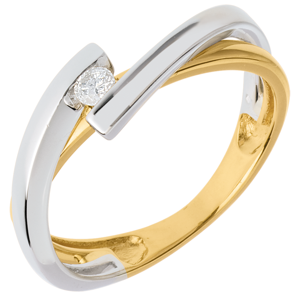 Solitario Nido Prezioso - Meccano Oro giallo e Oro bianco - 18 carati - Diamante