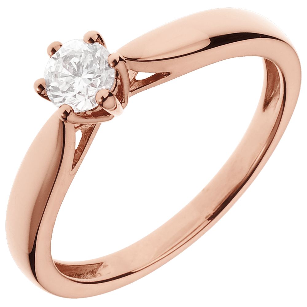Solitario Ramoscello - 6 griffe - Oro rosa- 18 carati - Diamante - 0.30 carati