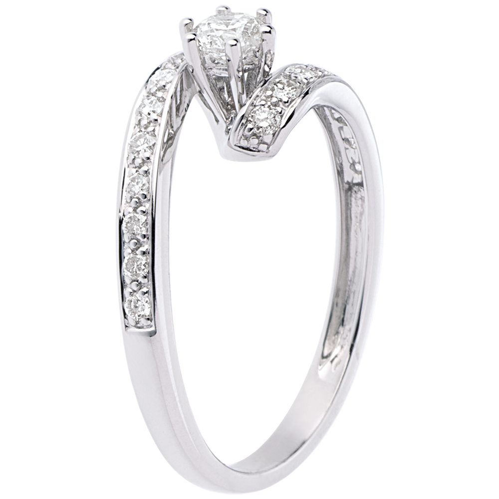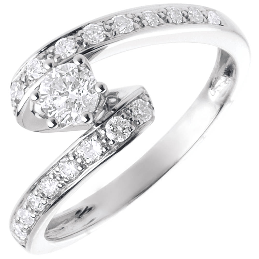 Anello di fidanzamento Solitario Destino - Nefertiti - Oro Bianco - 18 carati - Diamante centrale - 0.27 carati
