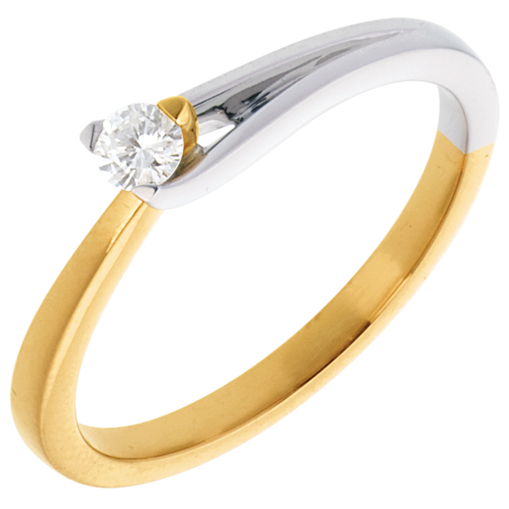Solitario Spilla - Oro giallo e Oro bianco - 18 carati - Diamante - 0.11 carati