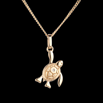 Una tartarughina nel suo cammino verso il mare. La sua corazza è in Oro giallo spazzolato, ornata di un diamante. Modello piccolo.
